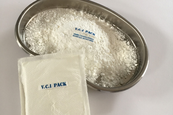 氣相防銹粉末多種特制的氣相緩蝕劑原料按一定配比均勻混合加工而成,具有水溶性,是一種新型的氣化性防銹材料。在密閉空間內(nèi),VCI經(jīng)氣化揮發(fā)到金屬的每個角落,吸附在金屬表面形成致密保護膜層從而起到防銹的作用