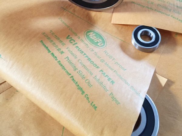 4、包裝過程---將含有緩蝕劑的面朝向金屬包裝,不覆膜防銹紙可作為金屬產(chǎn)品間墊層隔材使用,以免其他材質(zhì)阻隔材料含S、CL化學(xué)成分,影響防銹效果